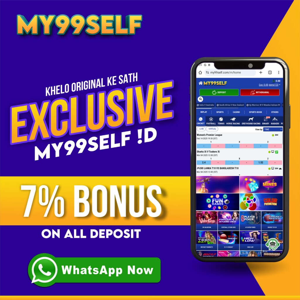 Join My99self – India’s trusted online sports exchange platform. Enjoy real-time sports trading, instant transactions, and a 30% signup bonus for new users. Start your winning journey today!